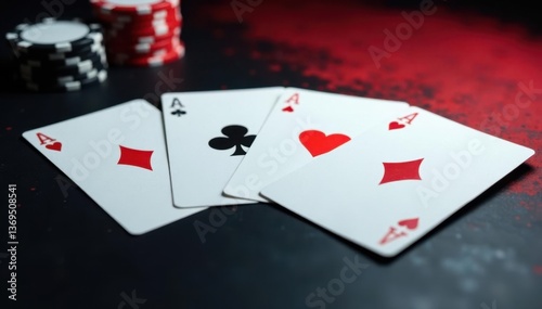 Four aces spread on a table, showcasing their unique design , blackjack, black, four aces