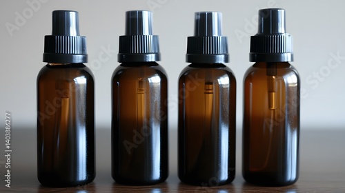 Four Amber Glass Bottles with Droppers Essential Oil Product Packaging