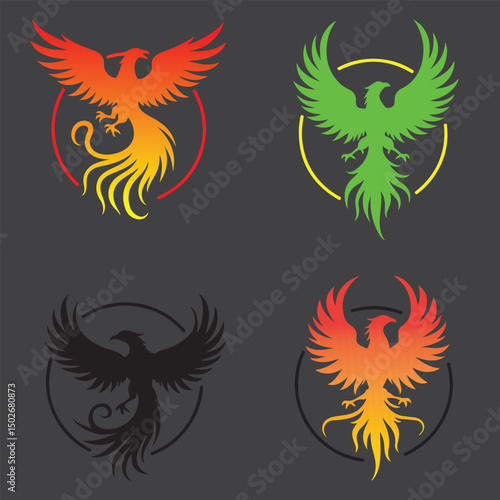 four bird logo and tattoo colorful illustration design.