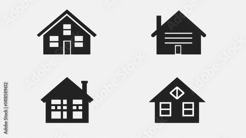 house, icon, grid, black, white, building, silhouette, structure, property, architecture, home, design, shape, symbol, graphic, element, isolated, outline, real, estate, residential, construction, simple, illustration, flat, minimal, drawing, object, pictogram, apartment, dwelling, housing, roof, window, facades, exterior, frame, geometric, template, background, signs, clip, art, style, app