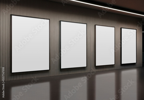 Four Blank Vertical Posters on Modern Slat Wall Mockup