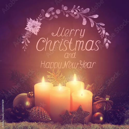 christmas, advent, candle, merry christmas, 4, new year, snow, christmas bauble, star, candlelight, celebration, word, christmas decoration, winter, christmas card, wood, night, flames, fir, christmas, bright, text, ball, fir, december, year, background, white, decoration, gold, light