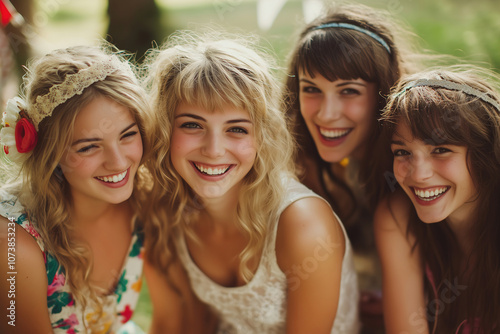 missy, friendship, outdoors, smiling, casual attire, laughter, sunny day, gathering, happiness, summer, joy, posing, relaxed, vibrant, carefree, flower, camaraderie, diverse, playfulness, youth, beauty, nature, fun, togetherness, celebration, community, lifestyle, smile, connection, bonding, creativity, blithe, playful, sunlit, generative, ai