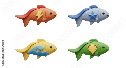 fish, toy, colourful, design, cartoon, children, children, orange, red, yellow, blue, green, lightning, wave, star, shield, pattern, isolated, graphic, cute, illustration, product, display, education, creative, play, entertainment, white, background, studio, image