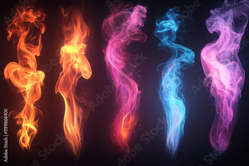 smoke, colours, black background, vibrant, dynamic, swirl, abstract, artistic, motion, aethereal, red, blue, green, yellow, movement, diffused, captivating, mesmerizing, striking, contrast, unique, gradient, transparent, dreamy, wispy, colourful, bright, floating, puff, fluid, illuminated, aesthetic, mysterious, atmospheric, fluidity, magical, evocative, chromatic, lively