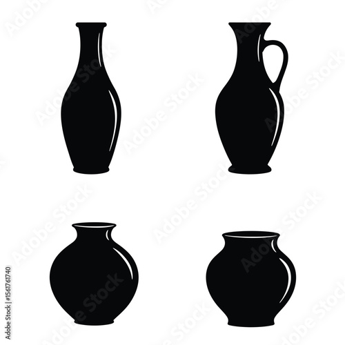vase, flower, decoration, decorative, ceramic, pottery, art, design, object, tableware, vessel, container, home, house, interior, style, elegant, classic, graphic, symbol, black, silhouette, outline, shape, clip art, drawing, element, simple, minimalist, pictogram, signs, isolated, white, background, curve, round, vintage, antique, retro