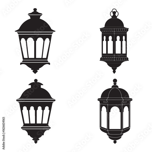lantern, silhouette, graphic, design, object, decorative, vintage, antique, traditional, ornate, arabic, moroccan, middle eastern, islamic, light, illumination, illustration, black-and-white, element, symbol, pattern, exterior, architectural, hanging, ornamental, classic, old-fashioned, retro, street light