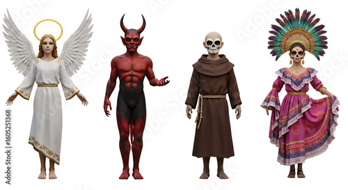 figure, character, angel, devil, skeleton, monastic, representation, religious, cultural, costume, illustration, graphic, artistic, isolated, white, background, design, digital, art, style, clothing, fantasy, creative, image, collection, illustrative, people, human