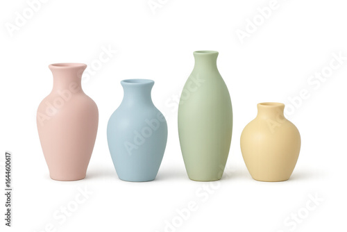 vase, pastel, empty, 4, set, collection, decoration, home decor, interior design, still life, pottery, ceramic, porcelain, simple, minimalist, modern, elegance, design, colours, pink, blue, green, yellow, no people, indoor, studio shot, cut-out, object, blank, template, art, creativity, style, home, house, interior, decorative, ornament, container, flower vase, simplicity, minimalism, transparent, background, isolated, white