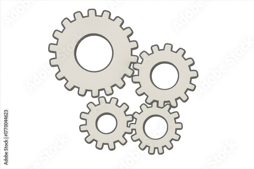 Four gears interlinking, representing a system working together seamlessly, with a transparent background
