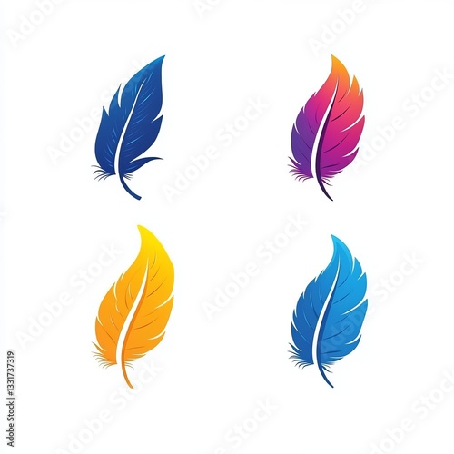ai, feather, gradient, blue, magenta, yellow, orange, teal, stylised, graphic, design, modern, simple, clean, illustration, icon, symbol, logotype, white background, colourful, vibrant, abstract, vector, art, graphic, image, design element, digital artwork, logo design, graphic design, digital illustration