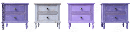 Four matching lavender-toned nightstands