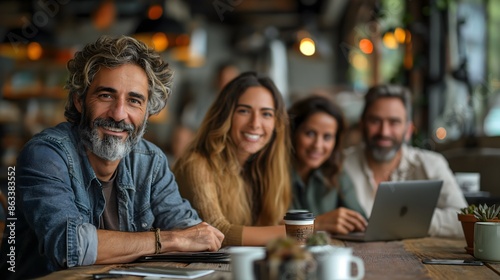 four people, smiling, teamwork, collaboration, professional, productive, meeting, conversation, technology, laptop, workspace, colleague, brainstorming, happy, interaction, indoor, corporate, diversity, working together, communication, businessperson, startup, innovation, networking