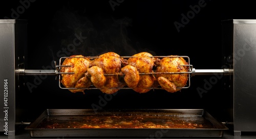 chicken, rotisserie, food, cooking, roasted, poultry, meat, dinner, meal, delicious, grill, cook, eatery, cookery, bar-b-q, bar-b-q, epicure, receipe, fresh, gastronomy, nourishment, ingredient, preparation, homemade, healthy, studio, shot, black, background, high, professional, photo, seasoned, metal, rod, steam, glaze, texture, drip, pan, oil, culinary, promotional, kitchen, equipment, roasting, evenly