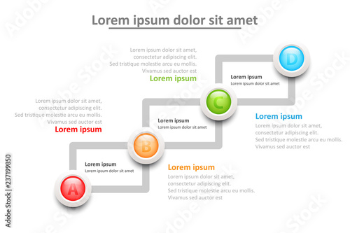 Four topics 3D colorful marble circle on sequence for website presentation cover poster vector design infographic illustration concept