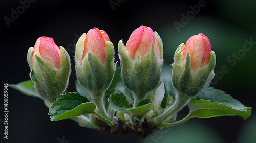 bud, flower, blossom, bloom, spring, nature, plant, floral, flower petals, unopened, pink, orange, leaf, green, stem, tree branch, dark, background, closeup, macro, photo, image, picture, vibrant, delicate, beauty, colours, contrast, detail, texture, growth, development, life, fresh, healthy, botanical, flora, horticulture, gardening, springtime, sunrise, dawn, romantic, serenity, peace, calmness, elegance, artistry, composition