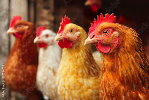 chicken, bird, farm, poultry, animal, rural, nature, farm animal, feather, domestic, portrait, farmyard, fowl, colourful, standing, group, hen, beak, eye, backyard, smallholding, wildlife, natural, country, environment, fresh, organic, rustic, adorable, playful, species, avian, habitat, flock, character, feather, sunny, breed, agriculture, red, head, brown, farming, white, comb, cockerel, closeup