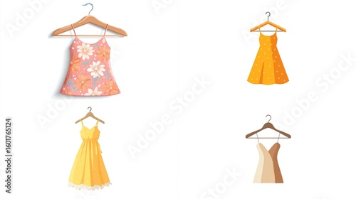 dress, top, floral, print, polka, dot, yellow, orange, pink, summer, fashion, clothing, hanger, style, design, apparel, casual attire, spring, elegant, trendy, modern, simple, colourful, light, cute, basic, solid, colours, vintage, classic, silhouette, sleeveless, fabric, texture, illustration, graphic, vector, image, flat, pastel, outfit, accessory, detail