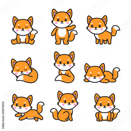 animal, baby, cartoon, character, cute, doodle, emotion, fox, funny, happy, illustration, mascot, run, sleep, smile, vector