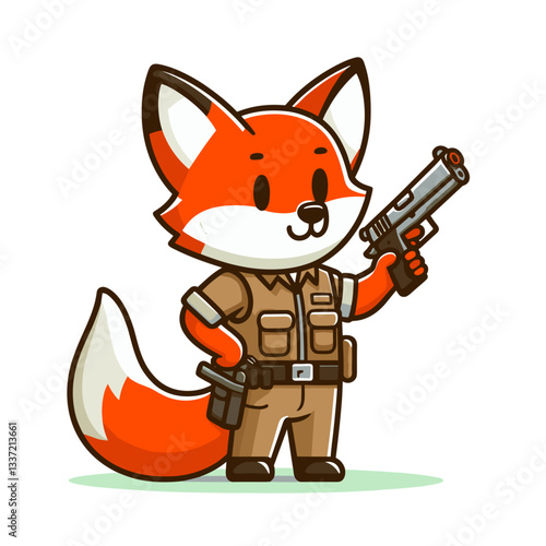 Fox soldier with pistol in beige military uniform. Perfect for tactical game character or army-themed illustration.
