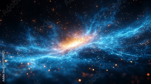 Fractal-inspired explosion radiating neon blue lights futuristic background