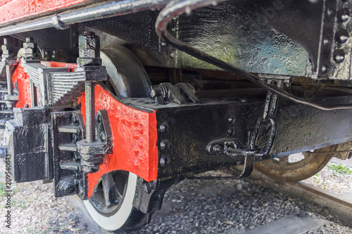 black, engine, construction, iron, locomotive, machine, old, power, railroad, railway, retro, steam, steel, train, transport, transportation, vintage, classic, closeup, engineering, fragment, historical, industrial, industry, movement, part, red, technology, apron, design, era, great, heavy, leading, lever, machinery, mechanic, oiled, piston, rail, repair, shabby, shiny, spring, victorian, wheel