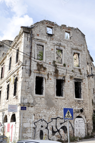 building, catastrophy, city, concrete, demolition, destroy, destruction, disaster, disruption, exterior, landscape, many-storied, opening, panoramic, pulling, staying, ruin, ruined, terrible, war, wide, mostar, window