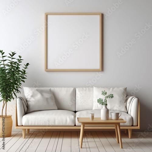 Frame mockup, ISO A paper size. Living room wall poster mockup. Interior mockup with house background. Modern interior design. 3D render