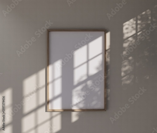 Frame mockup, ISO A0 paper size. Living room wall poster mockup. Interior mockup with house background. Modern interior design. 3D render