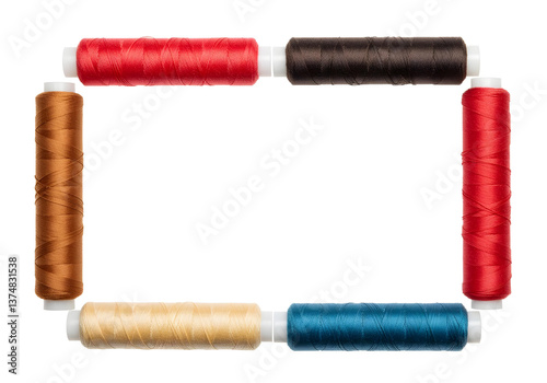 Frame of Colorful Sewing Threads isolated on white background