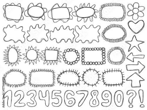 frame, number, label, banner, signs, doodle, crayons, draw, line, set, collection, isolated, school, children, children, 1, 2, three, 5, 6, 7, ten, pen, ink, mark, question, photo frame, photo, network, media, computer, flat, square, concept, circle, nubes, border, notepad, tags, marker, note, paper, sticker, star, message, book, manuscript, sale, tangle, simple