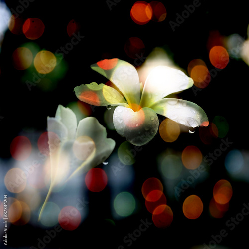 frangipani flower, plumeria on circular bokeh ;overlay picture