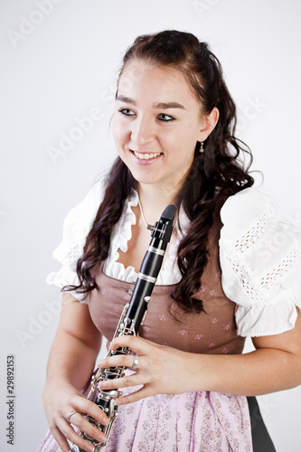clarinet, woman, dress, bavarian, bavaria, pretty, attractive, young, music, wind instrument, oktoberfest, musical instrument