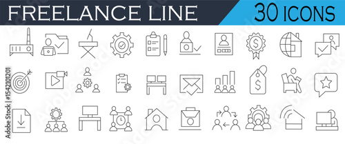 Freelancing Icons – Gig Economy, Remote Jobs, Online Work, Digital Nomad Graphics