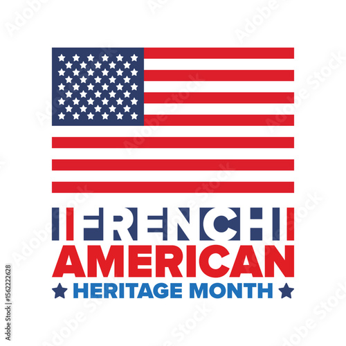 French American Heritage Month. France and United States flag. French blue color. Happy holiday celebrate in July. Culture month. Patriotic design. Poster, card, banner, template. Vector illustration