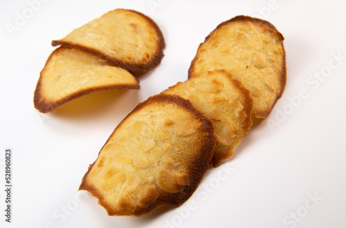 French delicacy pastry tuile with almond on wight background, High quality photo