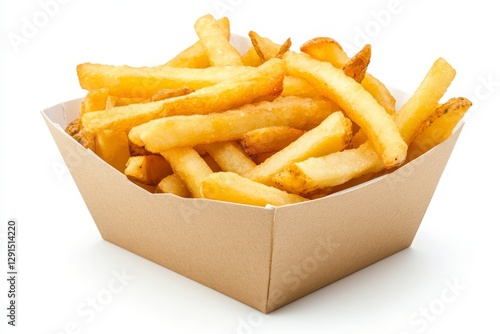 french fries, box, realistic, vector, illustration, fries, fried, background, brand, food, tasty, roasted, american, cardboard box, white, cooked, prepared, fat, unhealthy, meal, salty, design element, delicious, take-away, fast, object, three-dimensional, pack