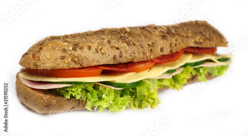 baguette, bread, brown, cheese, chicken, closeup, deli, eating, food, french, fresh, grain, ham, healthy, isolated, lettuce, loaf, lunch, meal, alimentary, onion, salad, salami, sandwich, seed, sesame, sliced, tomatoes, turkey, white, whole grain, wheaten