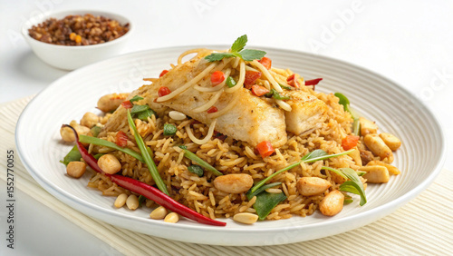 Fresh and authentic Nasi Goreng food on white background