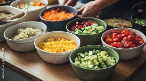 Fresh and Colorful Preparation of Healthy Ingredients for a Vibrant Salad with Assorted Vegetables and Grains