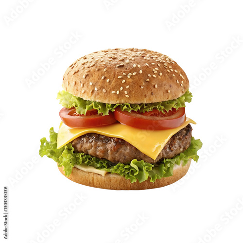 Fresh and delicious beef burger with cheese and salad isolated on white background