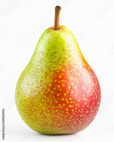 Fresh and Juicy Pear with Red and Green Skin on White Background