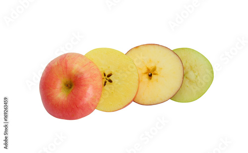 apple, background, clipping, closeup, colours, crop, cut, drink, eating, food, freshness, fruit, full, green, healthy, isolated, lobule, no, object, red, section, seed, slice, small, snack, studio, sweet, vegetable, white
