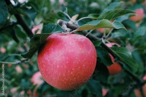 Fresh apples in an apple orchard field during the Autumn and Fall season