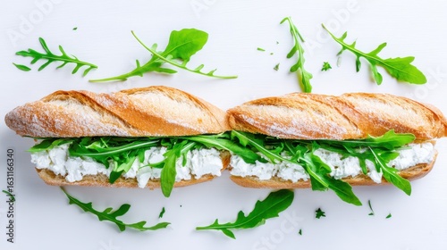 Fresh arugula and cheese sandwich culinary delight food photography bright minimalist setting top-down view healthy eating
