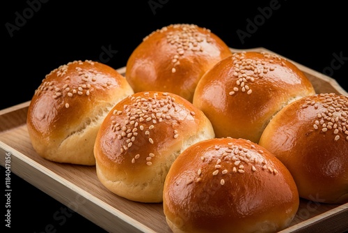 fresh baked buns isolated on a black background.
