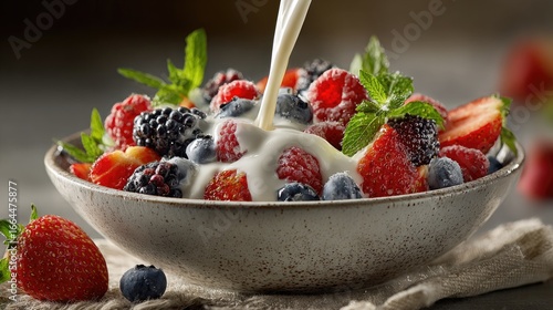 berry, cream, bowl, fruit, milk, dessert, healthy, food, sweet, fresh, summer, delicious, topping, pouring, alimentary, mixed, mix, strawberry, raspberry, blackberry, blueberry, mint, whipped, yogurt, sweetened, glacé, sugary, closeup, pale, light, creamy, food photography, plate, snack, breakfast, lunch, health food, organic, vegan, dairy, protein, vitamin, antioxidant, vitamin c, summer, refreshing, natural