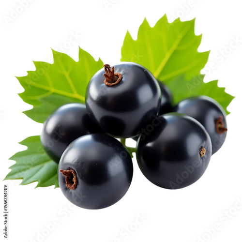 Fresh blackcurrants with green leaves isolated on transparent background