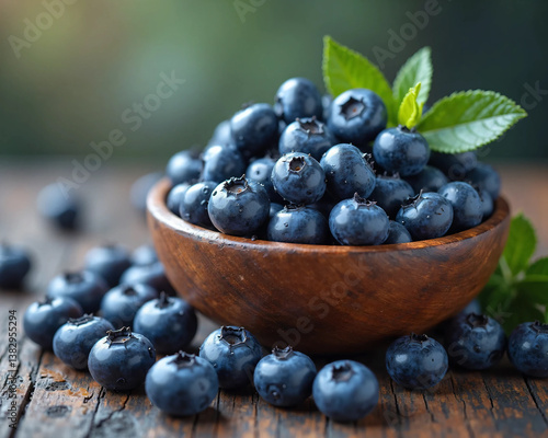 Fresh Blueberries in a Rustic Wooden Bowl – High-Resolution, Organic, Juicy, and Natural Superfood Photography for Commercial Food Advertising and Healthy Living