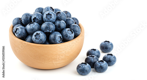 Fresh blueberries in a wooden bowl, isolated on white. Perfect for food, health, and antioxidant concepts.